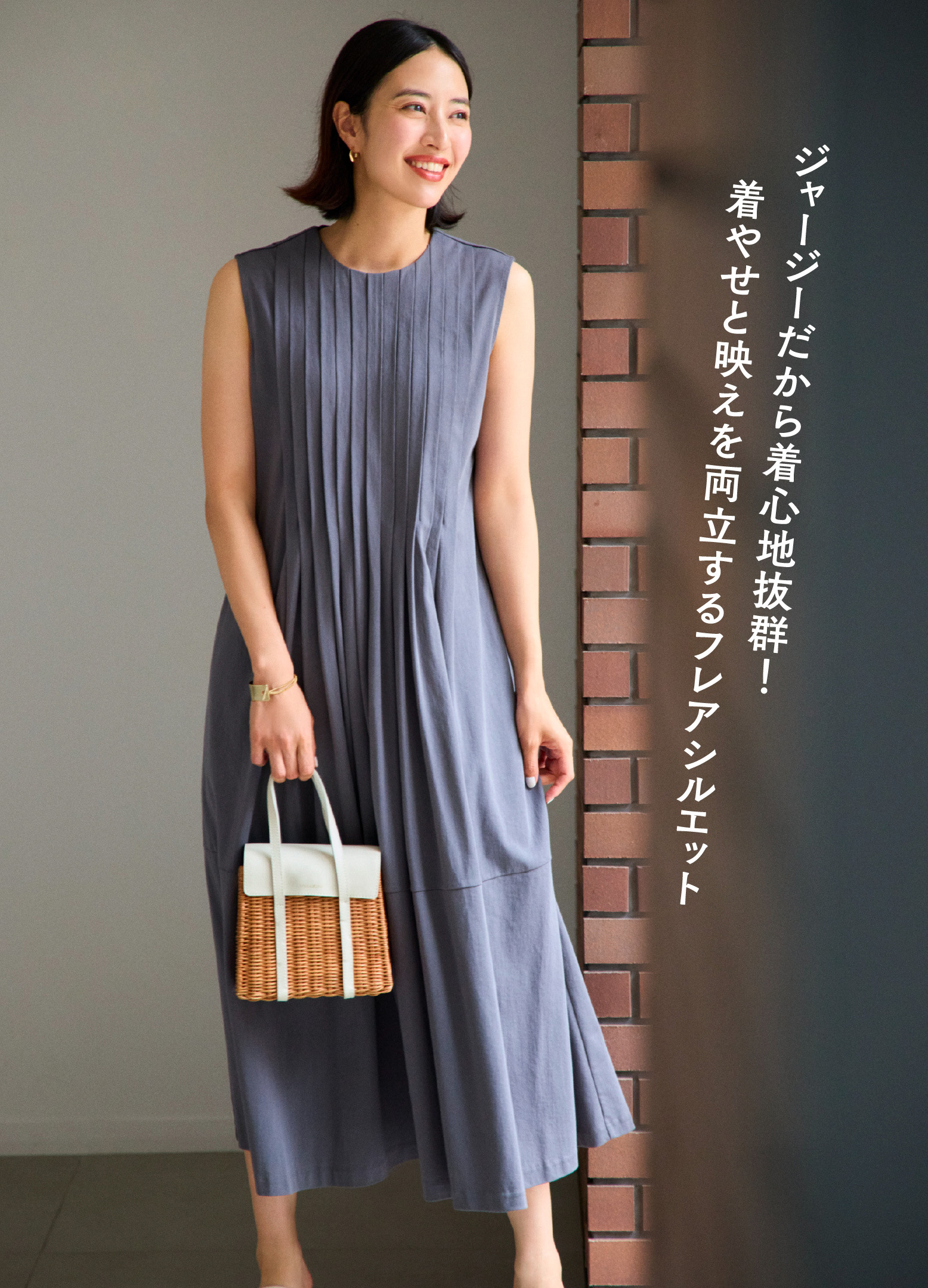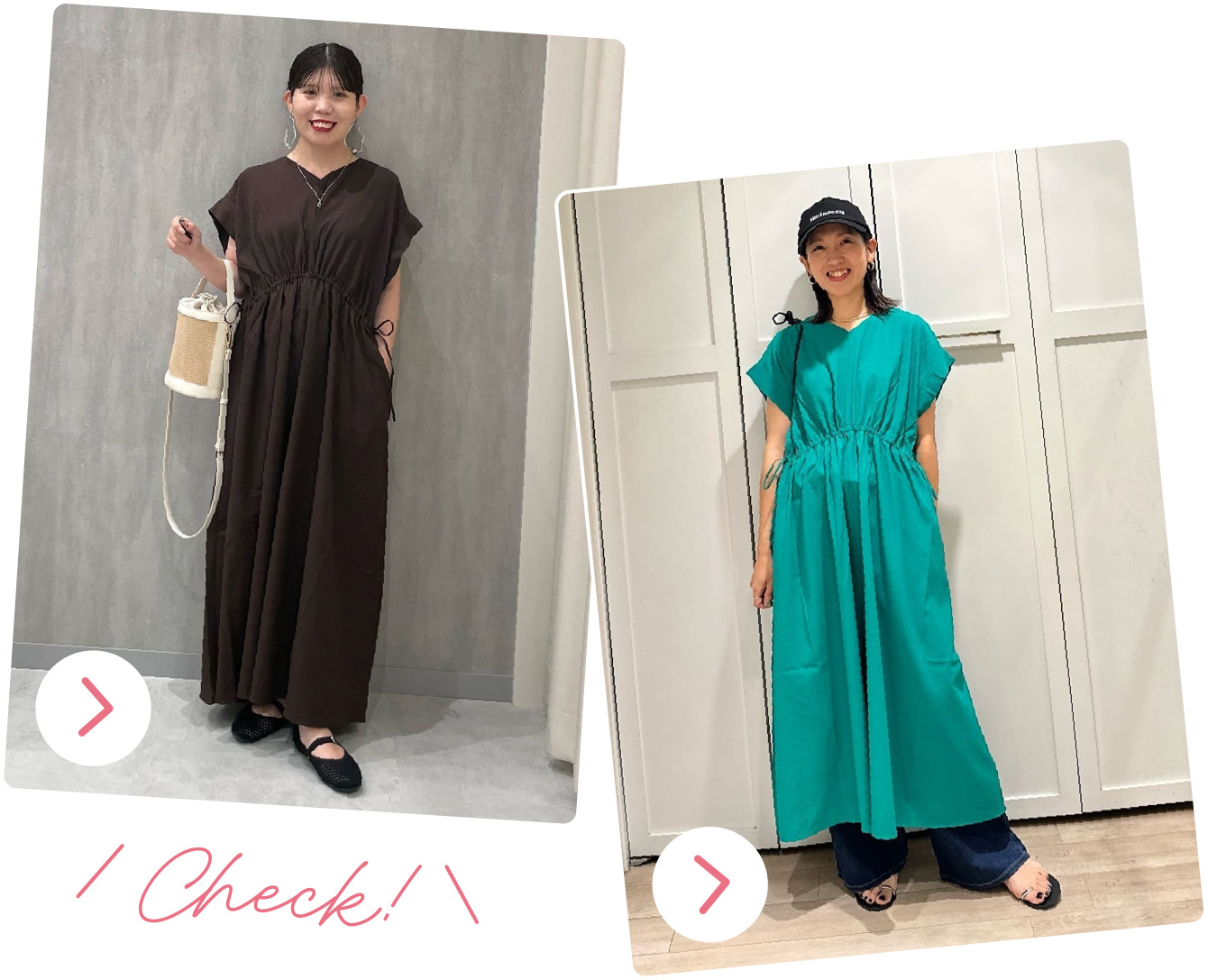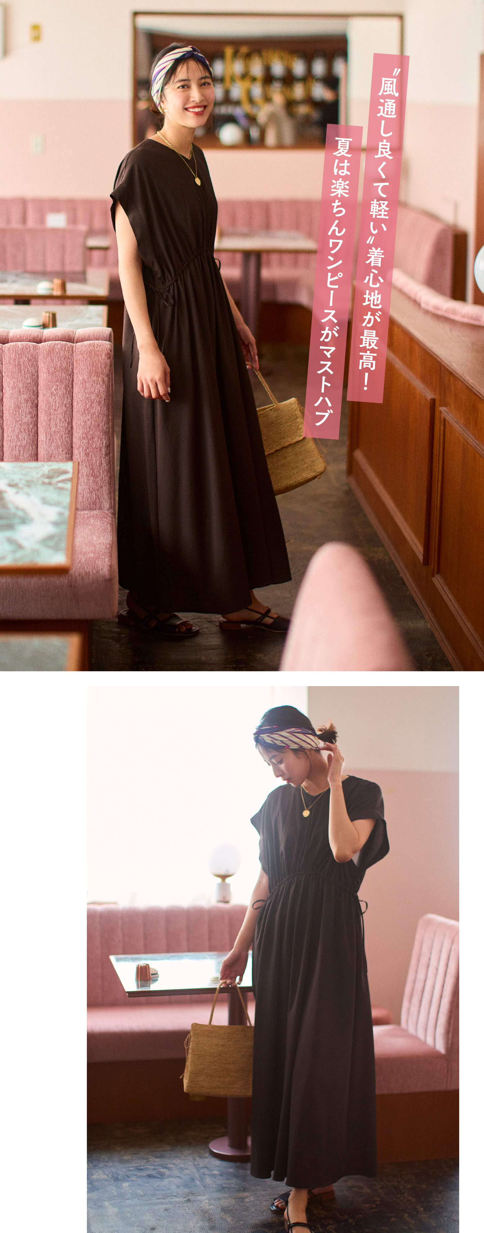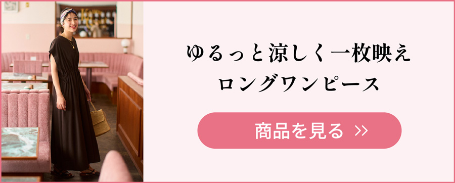 夏はやっぱりワンピース!風が通るから、一番涼しい。ビーサンでリゾートもいいし、スニーカー合わせも可愛いし!フラットパンプスでレストランでも使えるし、すごい便利!