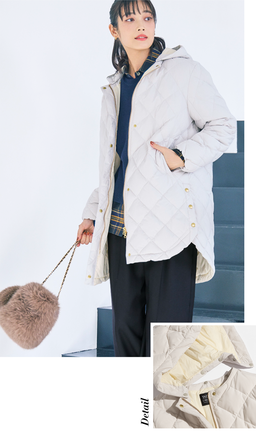 冬の大定番ダウンシリーズ“TAIONコラボ”から、ブルゾンデザインが新登場。気軽に扱えるのに暖かくて、幅広い層の女性に大人気!意外と寒い春先にも活躍してくれそう。