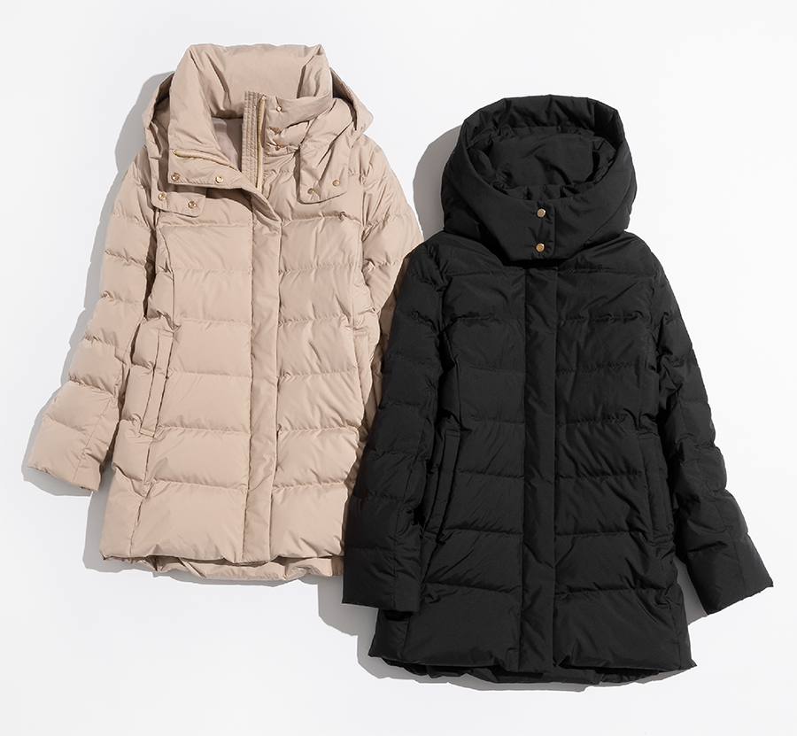フレアスカートにもばっちり似合う、コンパクトな着丈。高フィルパワーだからしっかり暖かく、デートから通勤までマルチに活躍!襟を留めれば、インナーダウンにも早変わり。